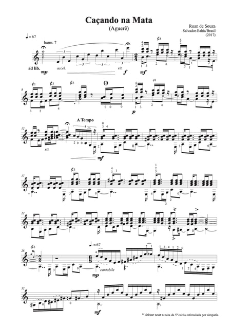 Música composta em 2017, finalista do 17º Prêmio Nabor Pires Camargo (2017) e premiada na Categoria Instrumental do 18º Festival de Música Educadora FM (2020). Participou do quadro "Talentos" do programa "Um Café lá em Casa" organizado pelo Nelson Faria. Esta composição para violão solo tem ímpeto triádico: Orixá (Oxossi), toque (Aguerè) e cântico (Odé comorodé), tem em sua estrutura o sistema harmônico tonal expandido, multitextura e técnicas expandidas. Sugere, em sua narrativa, a condução do ouvinte em 3 perspectivas: ora como caçador, ora como a caça e ora como orixá manifestado em um dos personagens. A partitura contem orientação quando as notações não-tradicionais (Bula).